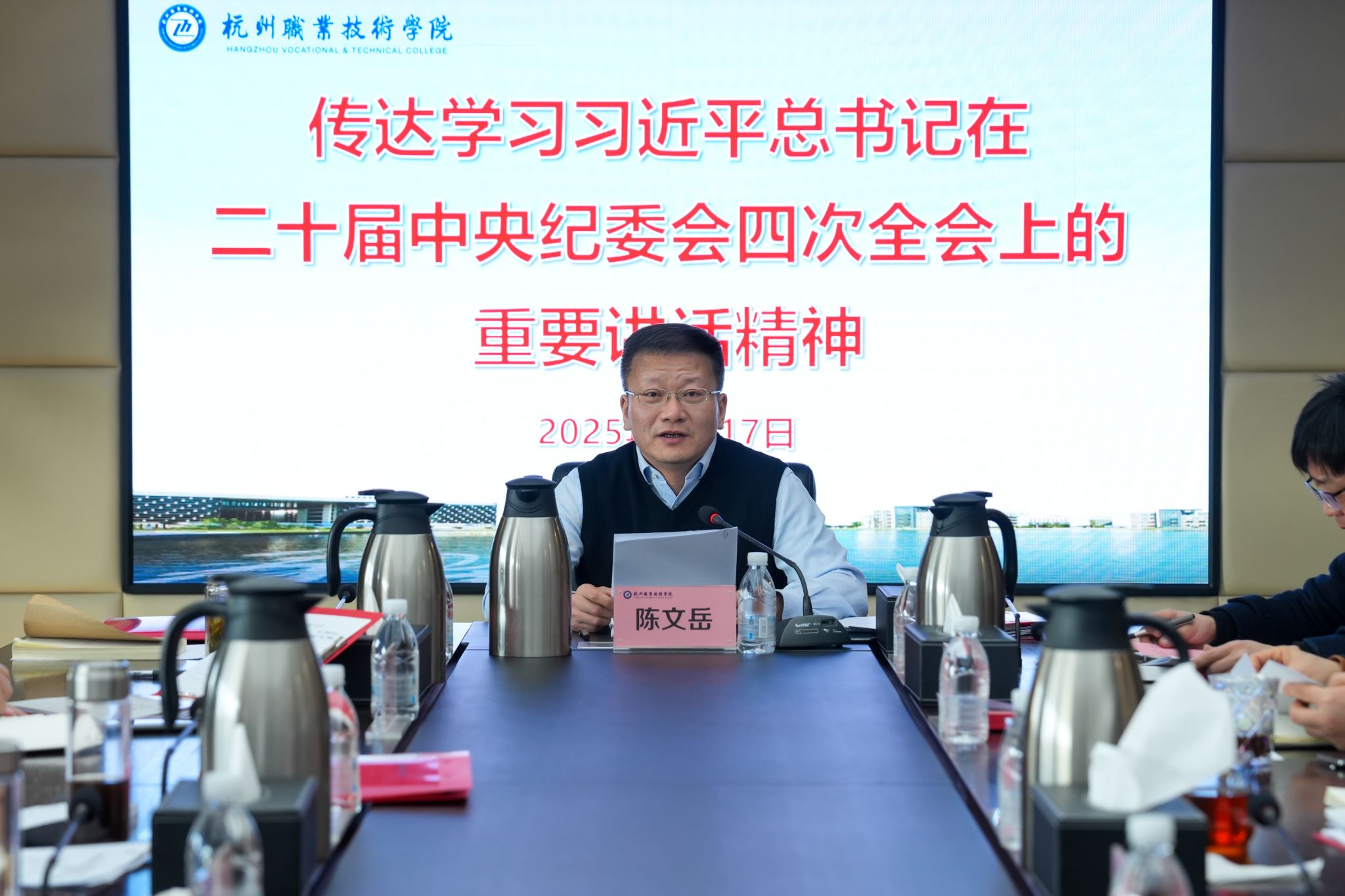 会议指出,学校要从实现新时代新征程党的使命任务的战略高度,认真学习和领会二十届中央纪委四次全会精神,不断加强党的创新理论武装,牢牢把握学校为党育人、为国育才的初心,积极落实立德树人根本任务,推动形成遵规守纪、干事创业的良好舆论氛围。