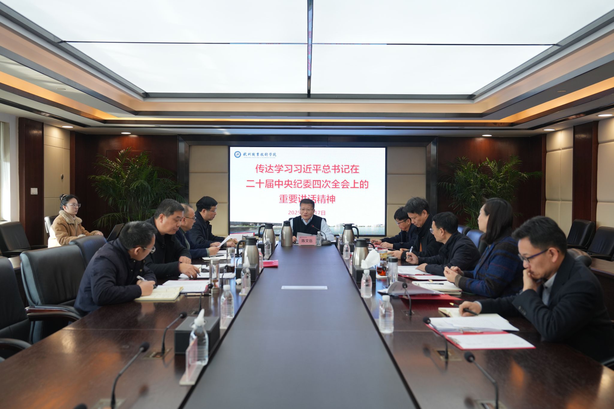 1月17日上午,学校党委会“第一议题”专题传达学习贯彻习近平总书记在二十届中央纪委四次全会上发表的重要讲话精神、对审计工作作出的重要指示以及在《求是》杂志上发表的重要文章《以中国式现代化全面推进强国建设、民族复兴伟业》。全体校领导班子成员参会,校党委书记陈文岳主持会议并讲话。