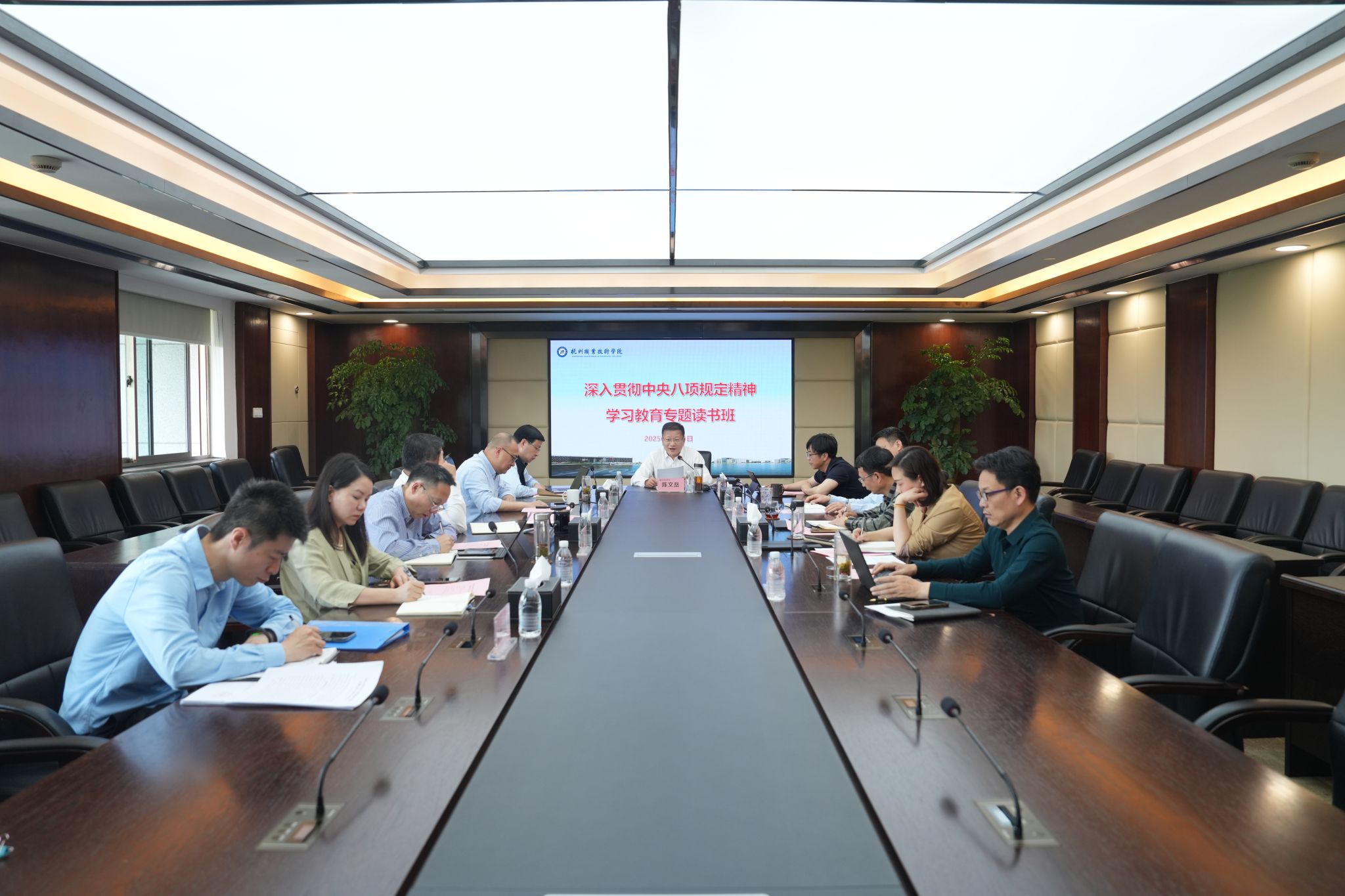 4月11日,学校党委在行政楼528会议室开展深入贯彻中央八项规定精神学习教育专题读书班第一次学习研讨暨党委理论学习中心组学习会。校党委书记陈文岳主持读书班专题学习研讨会并讲话。校党委领导班子成员及办公室、组织部、纪委办负责人参加会议。